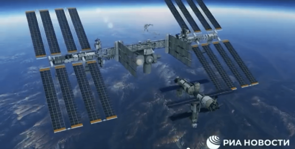 You may have already seen this ridiculous Russian video that NASA Watch shared with the world. It is very disturbing. Presumably created by the Russian space program Roscosmos, it shows the Russian portion of the International Space Station (ISS) breaking away as a result of the worldwide sanctions against the Russians for invading Ukraine. Here is the NASA Watch tweet and related video (an image of which is shown above):