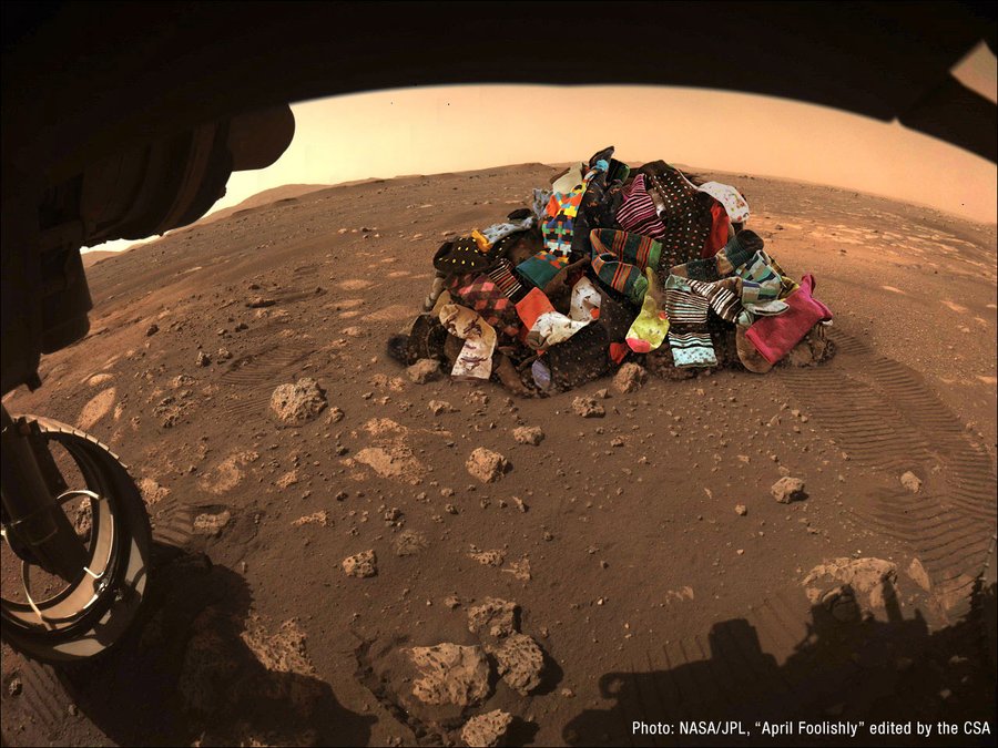 Wow! While travelling on the surface of Mars, the Perseverance rover found the place where all the missing socks from the dryer end up!