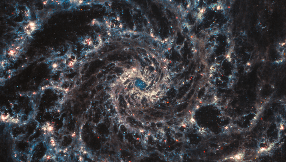 You can see more such JWST images by visiting the Physics at High Angular resolution in Nearby GalaxieS (PHANGS) Survey site. The site also includes images from the Hubble Space Telescope, the Spitzer Space Telescope, the Atacama Large Millimeter/submillimeter Array (ALMA), and other sources.