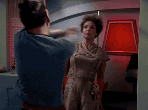 Image (Credit): Spock and Nancy in Star Trek’s “The Man Cage.” (Paramount Pictures)
