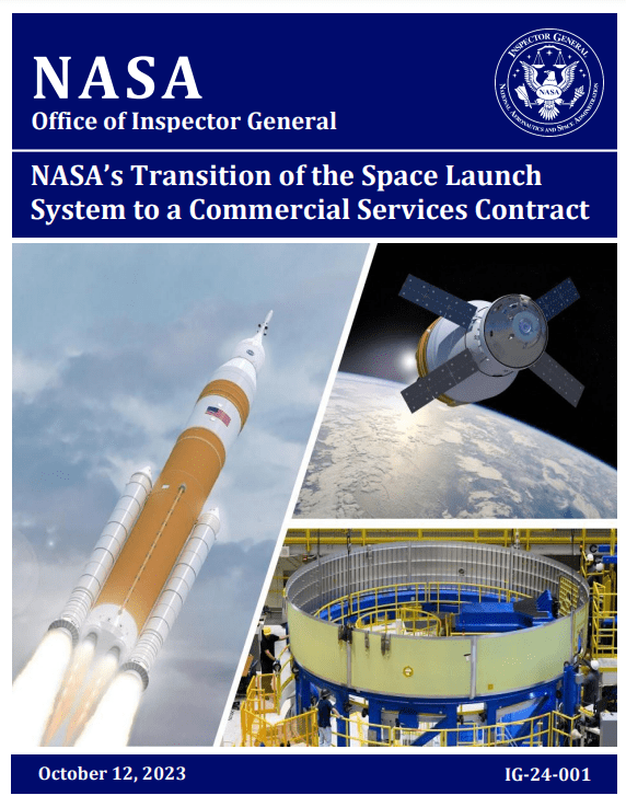In its report, NASA’s Transition of the Space Launch System to a Commercial Services Contract, NASA OIG concludes: