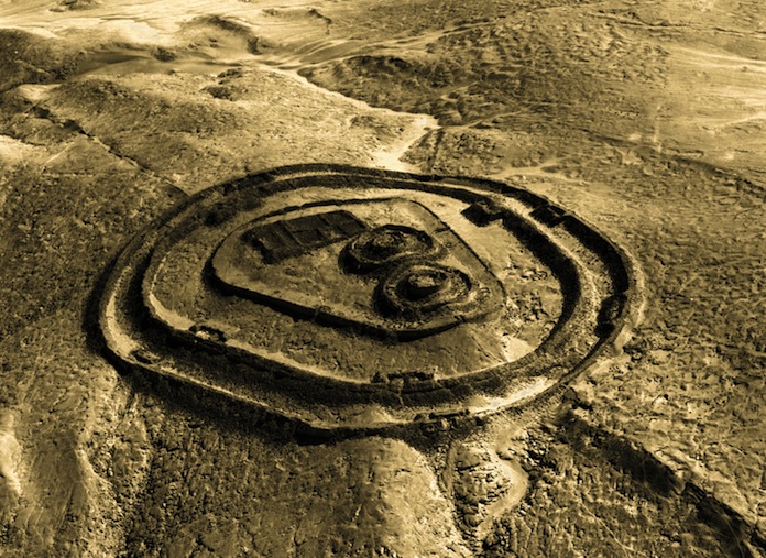 Image (Credit): Aerial view of the fortress at Chankillo. (Servicio Aerofotográfico Nacional, Lima)