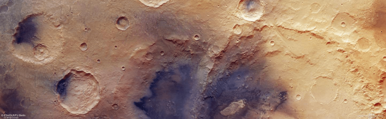 This week’s image comes from the the European Space Agency (ESA). Captured by ESA’s orbiting Mars Express, you are looking at a portion of the crater-covered Arabia Terra, which is a large plain in Mars’s ancient highlands. You can read more about this Martian region by visiting this site.