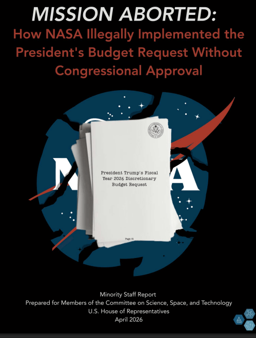 A new released minority staff report from the House Committee on Science, Space, and Technology, titled MISSION ABORTED: How NASA Illegally Implemented the President’s Budget Request Without Congressional Approval, has a few issues with the budget process at NASA.
