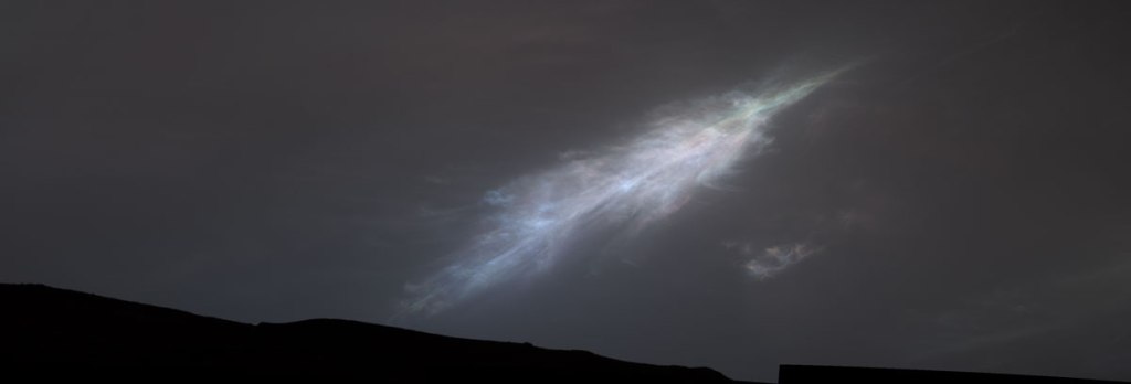 Studying the colors in iridescent clouds tells scientists something about particle size within the clouds and how they grow over time. These clouds were captured as part of a follow-on imaging campaign to study noctilucent, or “night-shining” clouds, which started in 2021. While most Martian clouds hover no more than 37 miles (60 kilometers) above the ground and are composed of water ice, these clouds appear to be higher in elevation, where it’s very cold. That suggests these clouds are made of carbon dioxide, or dry ice.